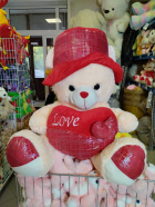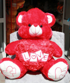 Мишка красный с сердцем в красных цветах 65 см - Цена: 1 900 руб. (розница)