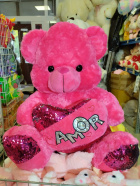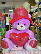 Мишка малиновый с малиновым сердцем и пайетками 65 см - Цена: 1 900 руб. (розница)