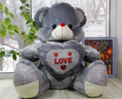 Мишка серый с блестящим сердцем 80 см - Цена: 3 800 руб. (розница)