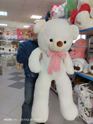 Мишка белый с розовым трикотажным бантом 150 см.
