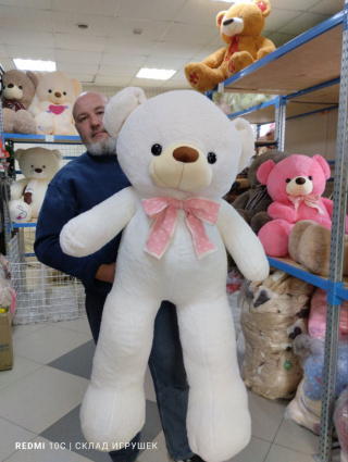 Мишка белый с розовым трикотажным шарфом 130 см.