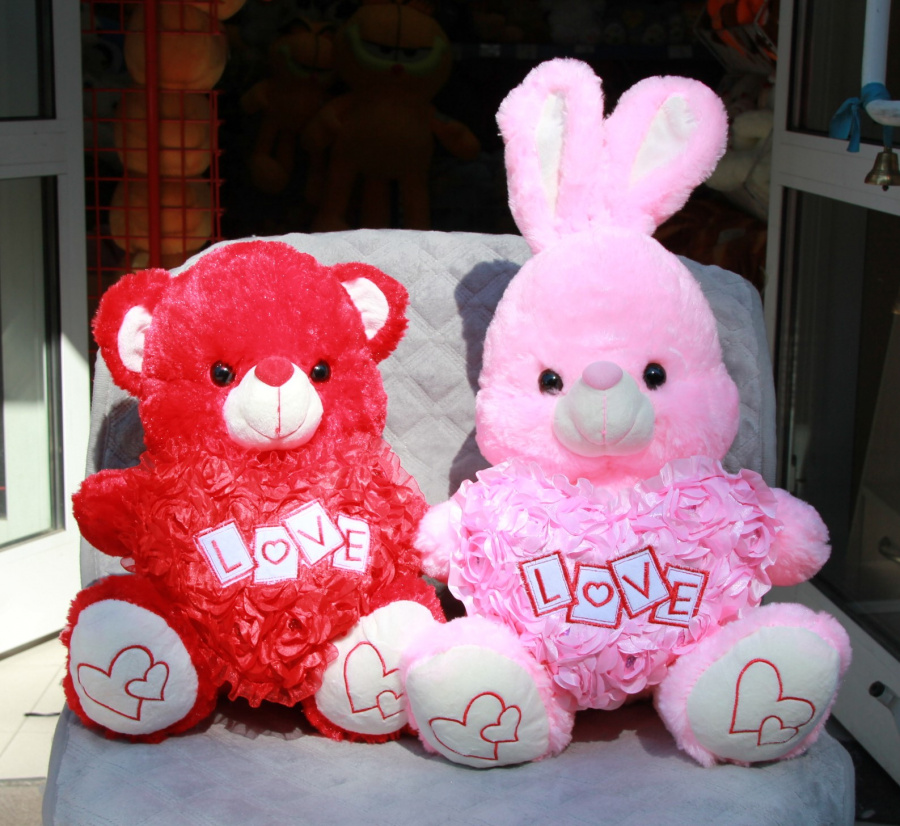 Заяц розовый 55 см с сердцем