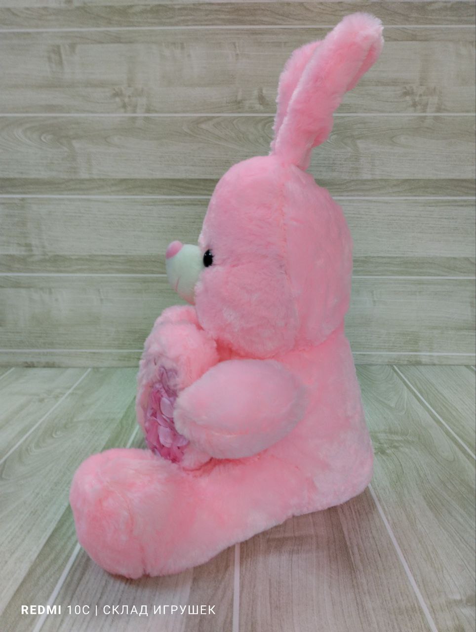 Заяц розовый 50 см с сердцем