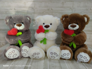 Мишка мохнатый с сердечком на палочке 45 см.