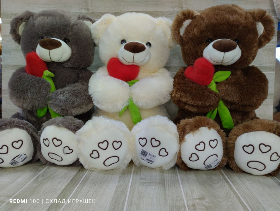 Мишка мохнатый с сердечком-цветком 60 см., 3 цвета