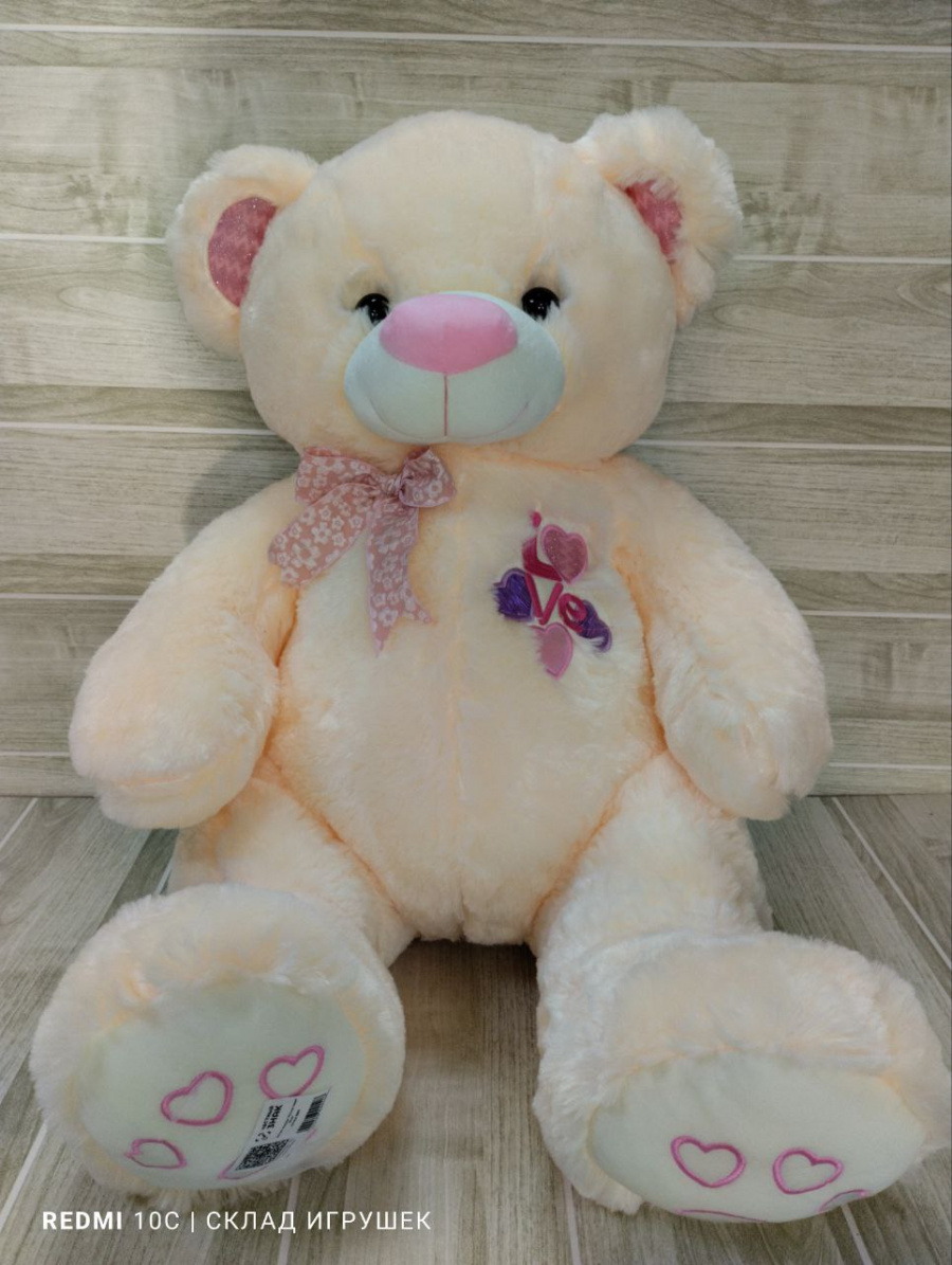 Мишка молочный с бантиком и вышивкой 60 см.