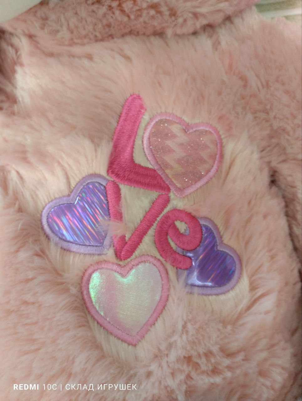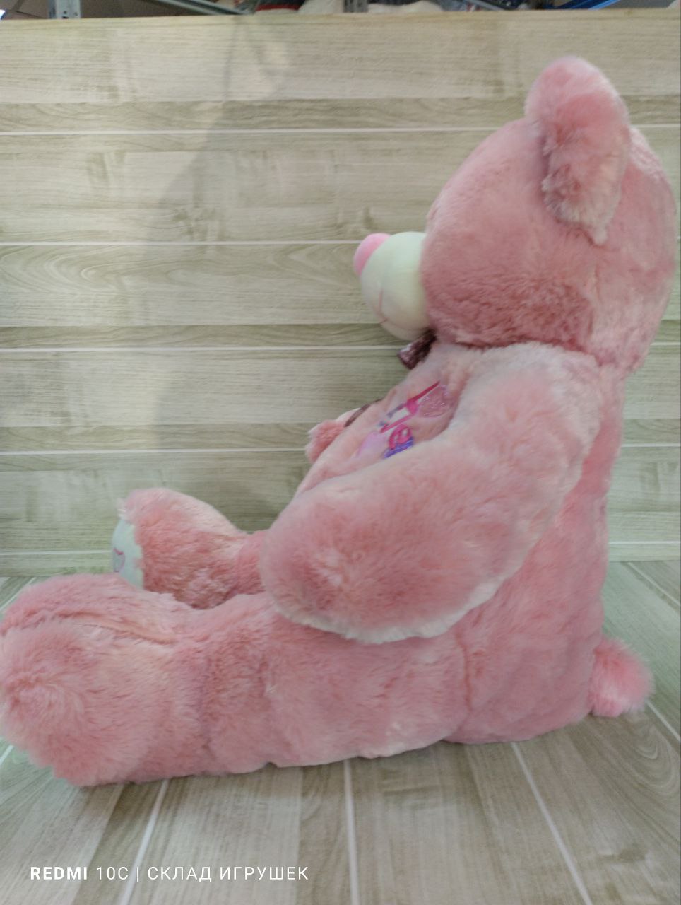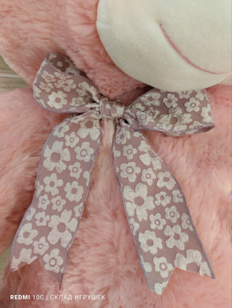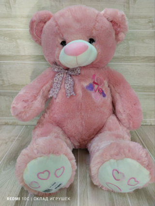 Мишка сидит, цвет "Пудра" с бантом и вышивкой 60 см.