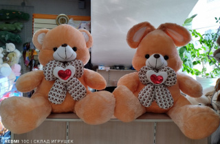 Заяц коричневый с бантом в клетку 65см