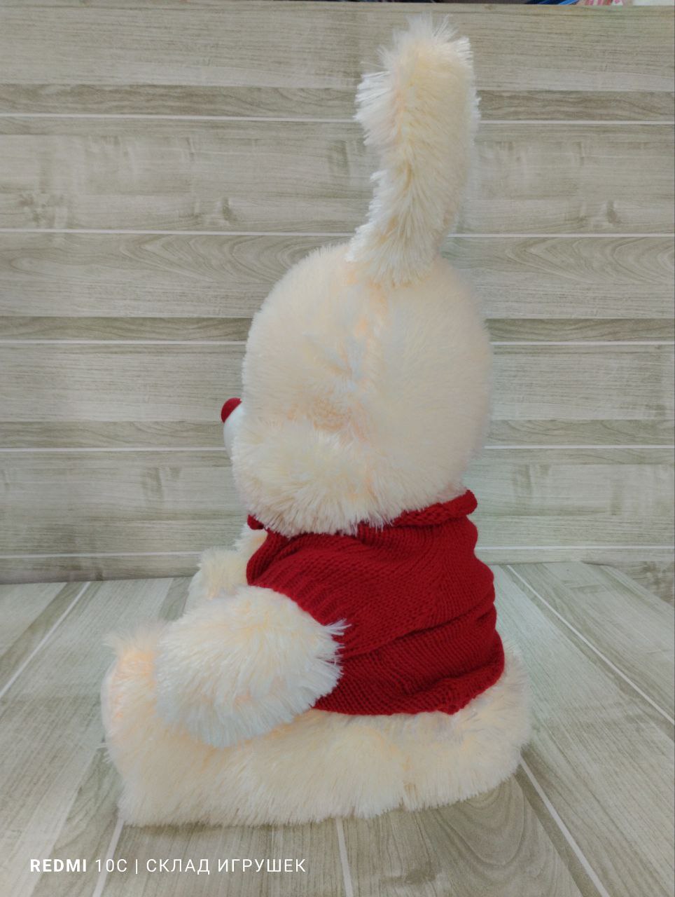 Заяц пушистый в кофте 40 см