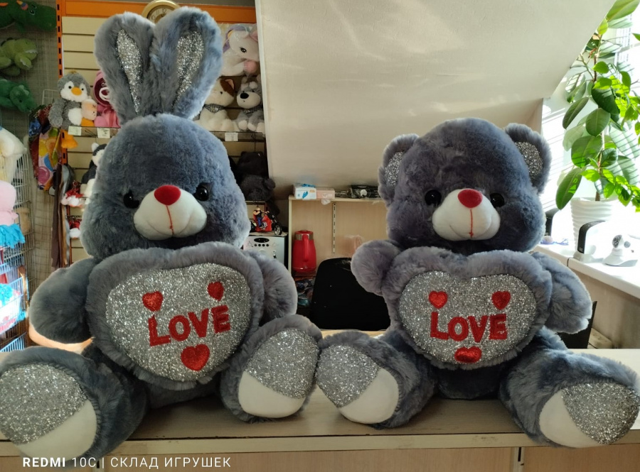 Заяц серый с блестящим сердцем и лапами