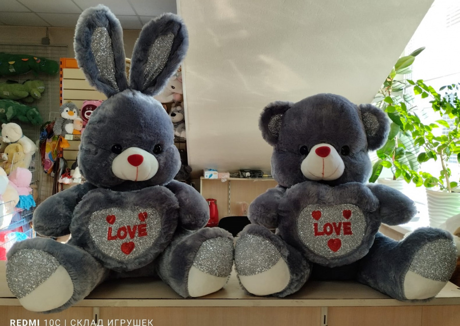 Заяц серый с сердцем блестящим 50 см