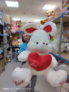 Заяц белый с красным сердцем в горох 110см.-спина - Цена: 5 800 руб. (розница)